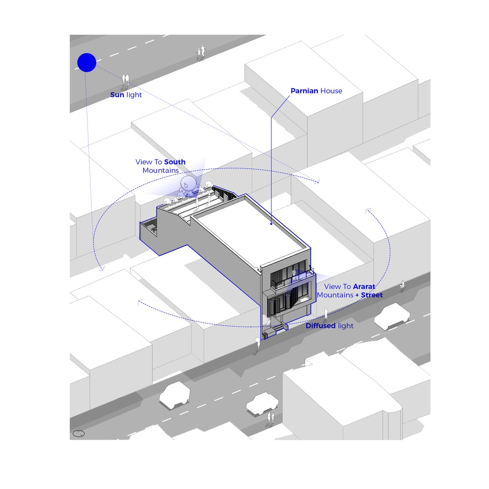 • پرداختن به مفهوم حیاط و ترکیب آن با فضای زندگی در تمام طبقات